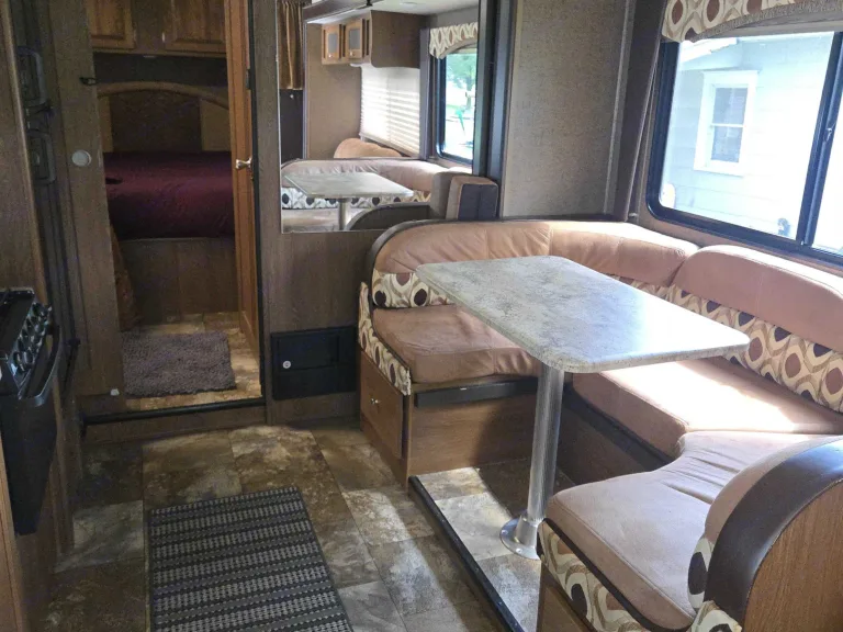 Love the large living space in the kitchen/dining area. Captains seats swivel to add additional seating. Awning and slide outs are easy to operate. Very cozy!