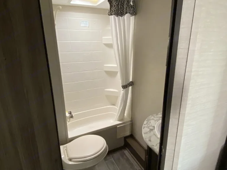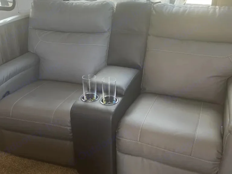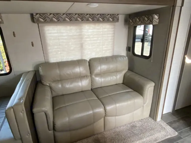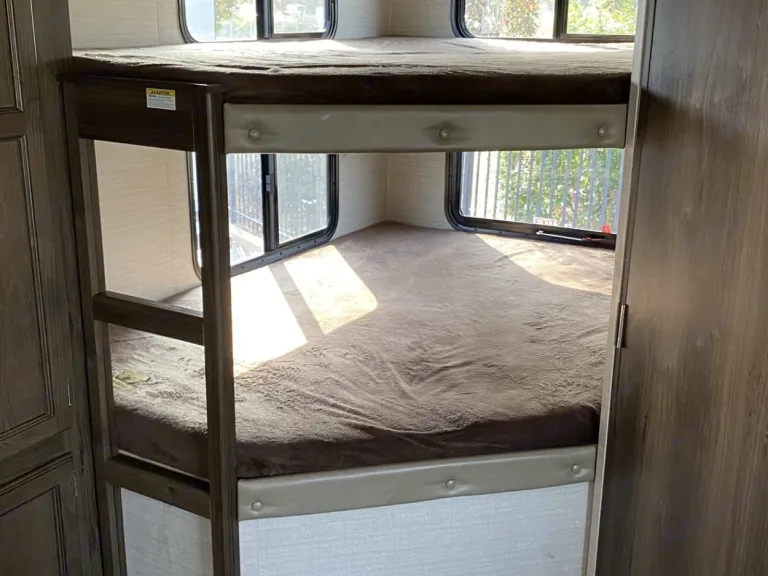 Ready for your next getaway? This trailer is comfortable, modern, and fun for the whole family!The indoor kitchen is fully equipped with a stove, oven, microwave, fridge, and freezer so you’ll have everything you need to prepare your meals. If you’d prefer to cook in the great outdoors, there’s an extra fridge and burner cooktop outside!Don’t worry about keeping everyone entertained with the provided games like Cornhole, Horseshoes, and Ladder Golf! There is also a Smart TV and DVD player in the living area for when you’re ready to kick your feet up and relax after a long day of adventuring.At the end of the day, the spacious dining/living area can quickly transform into sleeping space with the fold-out loveseat bed, 2 full bunk beds, and conversion dinette. On top of that, there’s a Sleep Number queen bed in the master bedroom!Did we mention that the trailer has air conditioning and heating, dual tandem radial tires for easy towing, storage space galore, and a bidet in the bathroom?!