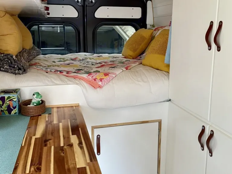 Bolt Adventures VT 2023 Dodge Promaster 1500 (Mammoth Edition), custom built by Papago Vans, is a professionally crafted conversion van fully equipped with full-surround back-up camera, 23 gallon fresh water tank, full-sized bed, 300 watt solar system with PMW solar charger, power inverter, dimmable LED lights, blackout blinds and curtain, a kitchen sink complete with hot water access, Acacia butcher block countertops, a portable induction cooktop, 3 cubic foot refrigerator with freezer, painted shiplap siding and natural wood ceiling. Tons of extra storage space in back for all of your adventure gear!What's includedThis beauty is also jam-packed with all of the amenities you will need to enjoy your journey, including outdoor/shower/rinsing station, high-quality fresh linens and towels, a portable vanity mirror, a cooler, Keurig Coffee Maker, retro toaster, cutlery and cooking utensils, induction-friendly pots and pans, plates, bowls and glassware, an outdoor dining table and chairs, and a compact grill. This van is the ultimate vessel for your road trip adventure. RecommendationsVT is loaded with adventure opportunities, including an abundance of RV-friendly state parks (https://vtstateparks.com/), swimming holes, hiking, local craft breweries and wineries and incredible fall foliage. The sky is the limit on the possibilities to enjoy the beautiful state of Vermont.