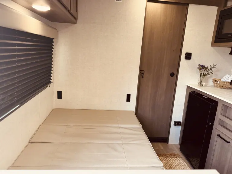 Rolling Haven – Grand Transcend One 1 (2025)The 2025 Grand Design Transcend One 1 is a compact yet thoughtfully designed travel trailer that maximizes comfort and convenience. Known for its efficient layout and spacious rear bathroom, this model offers a roomier shower and functional floor plan that’s perfect for couples or small families who want comfort without sacrificing mobility.Welcome to Rolling Haven, our beloved camper! Perfect for 2 adults and 2 kids, the dinette converts into a cozy bed for the little ones. We bought this camper brand new, and it has served us wonderfully — now we’re excited to share it with fellow adventurers.Fully equipped for your trip:• Sleeping: Queen bed for adults; dinette converts into a bed for 2 kids. Blankets and pillows included.
