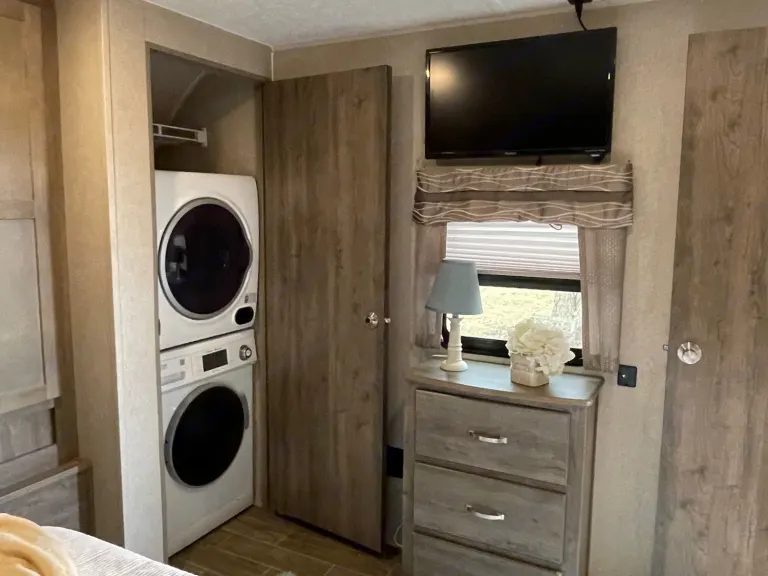 The "Heifer" has it all! She is a 2019 Palomino Puma and offers plenty of room to stretch out and relax. This model has a front Master bedroom with an east/west queen bed with a memory foam topper and washer and dryer. The rear bedroom has two XL twin bunks as well as a pull-out sofa. The main living area/kitchen has a pull-out sofa and dinette that converts to a bed. With three slide outs, the outdoor amenities include a kitchen with mini fridge, microwave, sink and pull-out hot plate. Adjacent to that is an outdoor shower, outdoor speakers and 21' awning with rope lighting. The Heifer runs off of a 30- or 50-amp electric hookup. *Note* 30-amp hookup will limit what functions you can use simultaneously. There is an antenna to pick local TV stations, however if the campground you chose offers cable, we do provide the port for hookup.