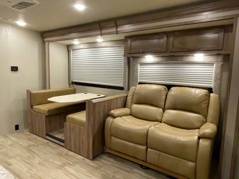 Modern interior and comfortable. Has 2 full slide outs with lots of room. Push button awning with lighting. Backup camera helps you see behind, also can be used while driving forward. Dinette also folds into a bed. and also has seat belts. Full stand in shower separate from bathroom. Kitchen (utensils and cookware) are also included for your use.What's includedCookwareRecommendationsBring pillows Other things to noteAbsolutely No Smoking in RV. Will have full tanks, please return with full tanks. NO pets allowed