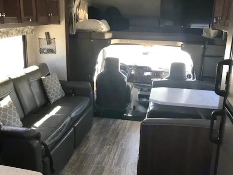 Lilybell, is the perfect Class C Motorhome for NEW and experienced travelers. Easy to drive with back up camera and side cameras. Air-ride suspension, power retracting awning, automatic leveling system that make set-up a breeze. On board generator. All amenities are controlled by one of two touchscreen controllers.There are 3 separate TV's and one blu-ray DVD player for when you want the amenities from home including one to watch by the campfire.Fully stocked kitchen, 3 burner stovetop and oven and an overhead microwave. A large pull-out pantry next to the fridge and a flip out counter extension.