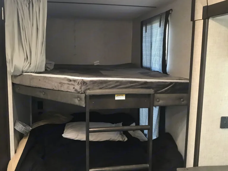 Roomy and spacious ready to go travel trailer. Equipped with all the essentials, blankets, cooking utensils, private master queen, mega slide-out, two full bunks, dinette table that converts to a bed for one adult or two kids, sleeper sofa, power awning, Bluetooth stereo with indoor outdoor speakers, full bathroom, tub/shower combo, 50 gallon water tank, full sized indoor fridge, outdoor BBQ, dual propane tanks, dual batteries for dry camping and more. The unit weighs 5,300 dry and can be easily towed with most trucks and SUV's. Please reach out if you have any questions about the unit or would like to discuss delivery and setup options.