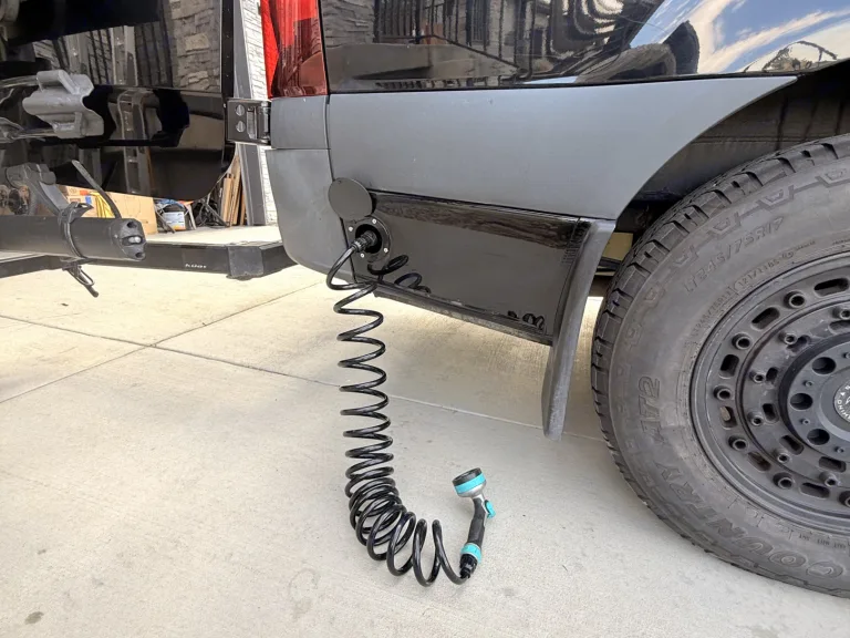 • Self-Sufficient Water — 28-gallon undercarriage fresh water tank + 12V pump for sinks/showers on the go.