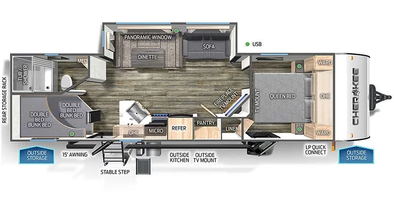 2023 Forest River Cherokee 264DBH – Sleeps 8 – Fully Loaded & DeliveredWe bring the adventure to you! Our 2023 Forest River Cherokee arrives fully loaded at your campsite or location—just unpack and relax. Whether it’s a weekend getaway, family vacation, or special celebration, this spacious bunkhouse is ready to be your turn-key home on wheels.⸻What’s Included