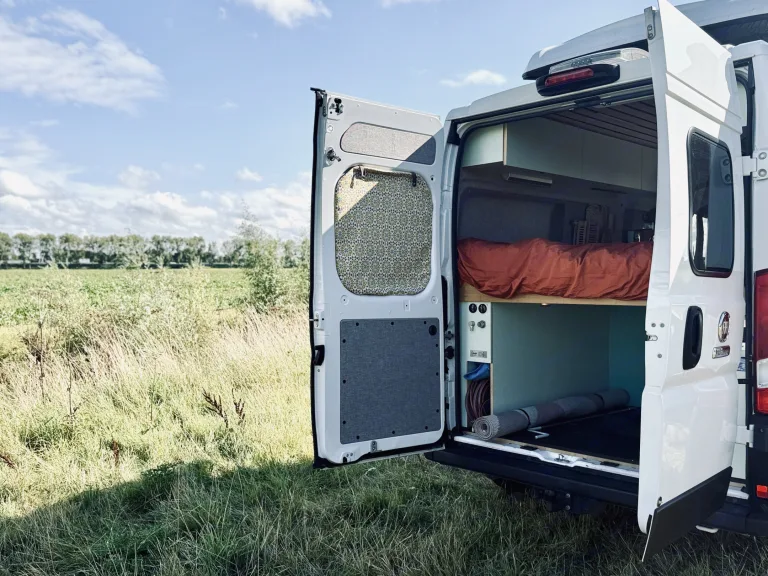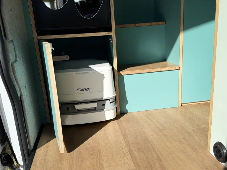 Bennie: Fiat Ducato Campervan (Automatic, 2020) – Pet Friendly - 4-Person AdventureMeet Bennie, our modern Fiat Ducato campervan with automatic gearbox, designed in 2020 for comfort, adventure, and style. Built by Campr, Bennie combines craftsmanship with premium features, making it the ideal companion for a carefree holiday, remote work week, or sporty road trip.Comfort & PracticalityInside, Bennie offers everything you need for a hassle-free trip:- Fixed double bed at the rear- Pop-top roof with two extra sleeping places (perfect for kids or friends)- Dining area with a fixed bench and swivel front seats- Fully equipped kitchen with 2-burner stove, workspace, and inventory- Porta Potti toilet for emergencies- Outdoor shower with hot water – enjoy fresh air & great views- Modern Features- Heating for year-round comfort- Awning for outdoor shade & extra space- Apple CarPlay & Android Auto- Navigation system & audio system- Compact yet powerful – easy to drive & parkComplete InventoryThe camper comes with a full kitchen inventory. We also offer some extras for rental during your trip (against a rate) so you only need to bring your personal items (see below). We also have some decorations inside the camper depending on availability (such as flower pots, plaids, cushions, and lighting).Kitchen- Dinner plates x4- Breakfast plates x4- Bowls x4- Cups x4- Cutlery (4 sets)- Utensils- Frying pan & saucepan (x2)- Moka-pot x1- Silicone mat x1- Cutting board x1- Tray x1- Drying rack x1- Lighter x1- Bottle opener x1Camping equipment- Foldable table x1- Camping chairs x2- Ground carpet x1- Tent pegs x6- Hammer with peg puller x1- Foldable step x1- Electricity cable 20m + French connector- Auto combitas- Water hose- Fire extinguisherDon’t miss this opportunity to rent Bennie, our Fiat Ducato automatic campervan, and enjoy total freedom and comfort on your next road trip!Team Jolly Campers