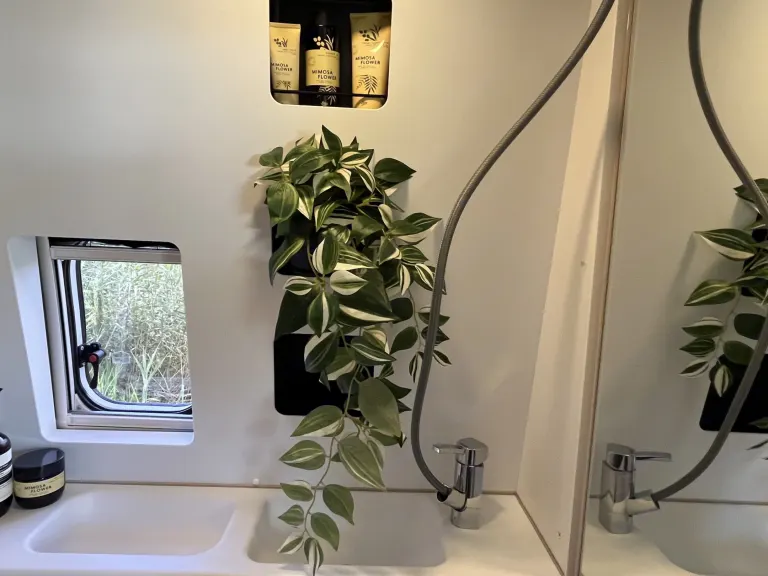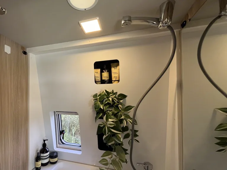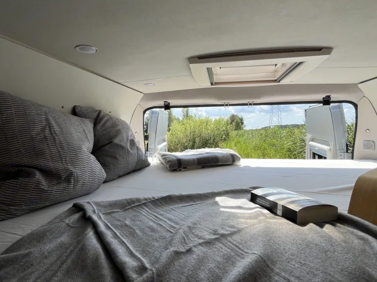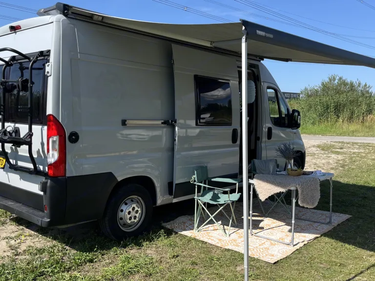 The complete kitchen has a 2-burner gas stove, sink with hot and cold water, and a very large 95-liter refrigerator with a freezer compartment. The spacious bathroom is equipped with a toilet, sink, and a fully lockable shower. For extra comfort, all windows are equipped with sliding fly screens and blackouts. You get a gas bottle and fully charged leisure batteries for a comfortable tripOff-Grid Capabilities
