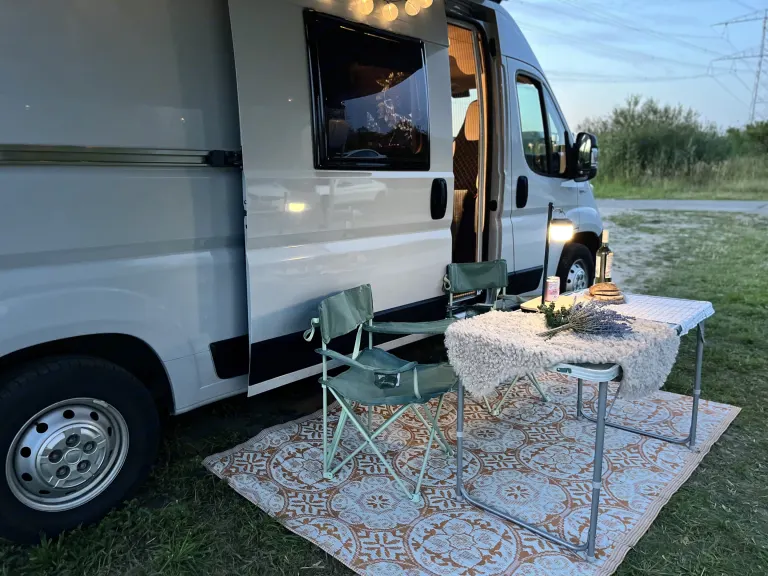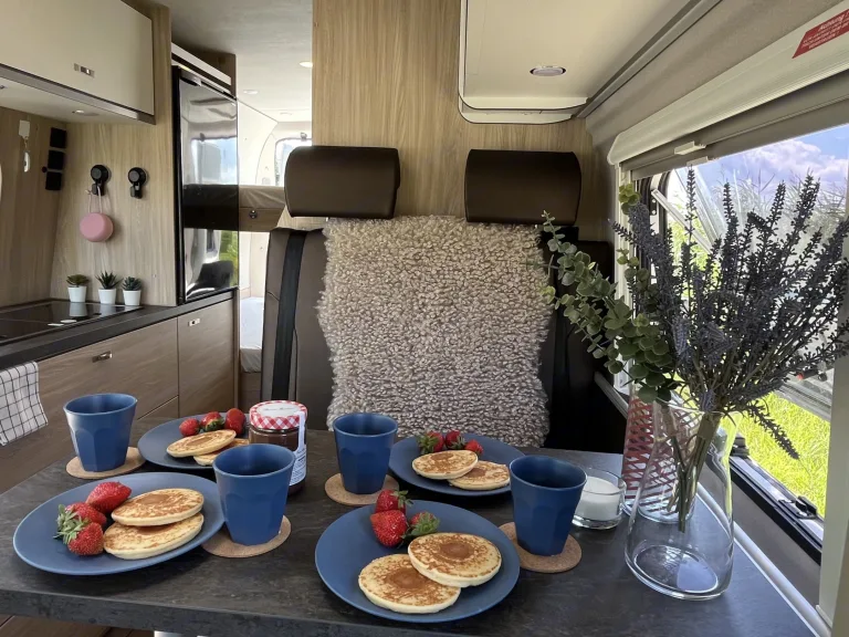 With a length of 5.99 meters and a width of 2.05 meters, this camper is compact enough to park almost anywhere and travel conveniently in many countries. The powerful 120 hp engine ensures that you can drive through mountainous areas with ease.Comfortable and Cozy Interior