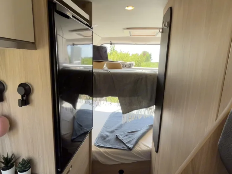 The interior is modern and fresh, with a cozy and spacious seating group with an extendable table and 2 luxurious swivel pilot chairs. At the back of the camper, there are two sleeping places for 4 people, with length beds of 1.84 and 1.80 meters. For extra flexibility, the camper offers no few than 3 sleeping configurations, allowing you to sleep 2, 3, and 4 people. The top bed can be converted into a single bed or even removed completely for extra space.Full Equipment