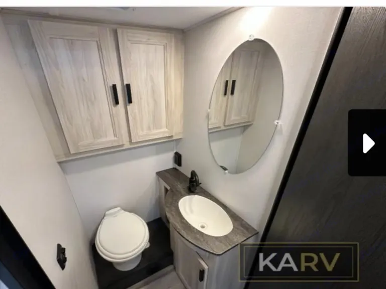 Full bathroom with shower, toilet, and sink—everything you need to stay fresh on the go.