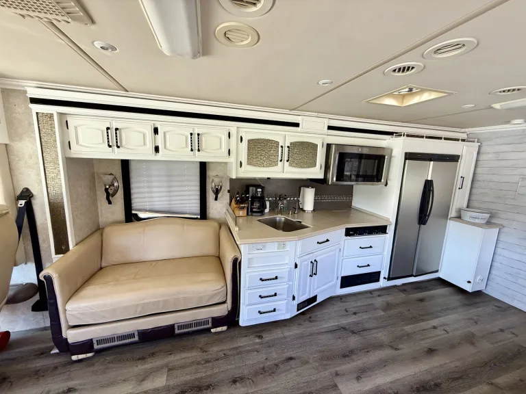 Experience the road in style with this beautifully updated 40ft diesel pusher. Features include a spacious open layout, modern finishes, full kitchen, private bedroom, and upgraded flooring and furnishings. Perfect for family vacations, road trips, or long-term stays.4 slides for maximum living space