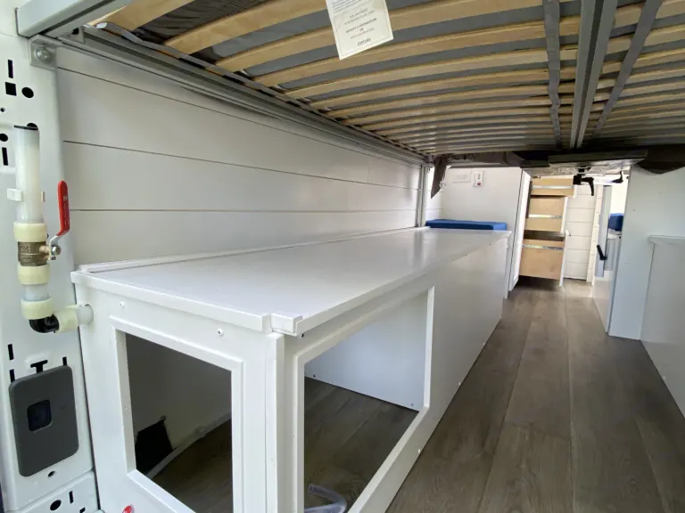 So much storage space! The cabinets and storage “garage”. Provide 2x the capacity of a full-sized truck bed.