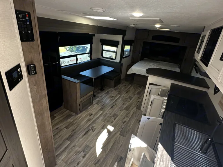 The perfect camper for couples or small families. It sleeps up to 4 with a private queen bed and a large dinette that turns into a bed. Enjoy a full kitchen, spacious bathroom, Smart TV, and modern, stylish interior. Easy to tow and loaded with comfort, this RV is ready for your next adventure!