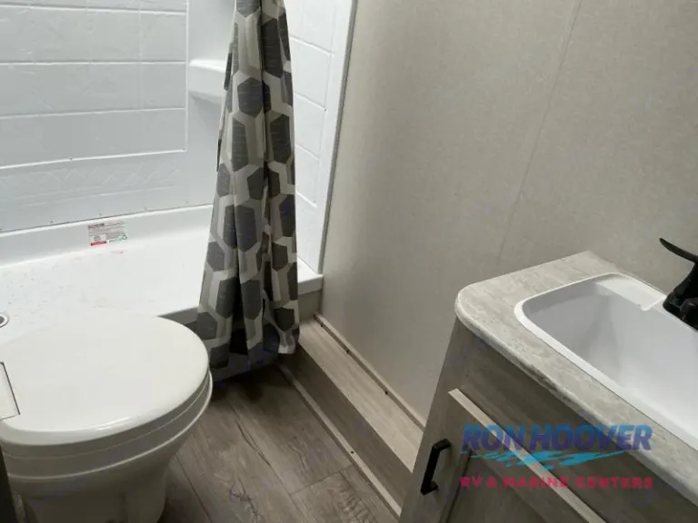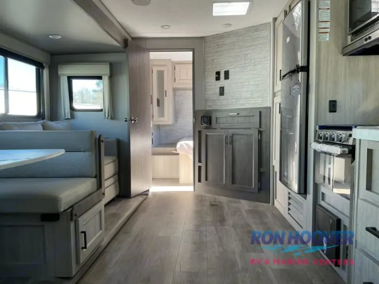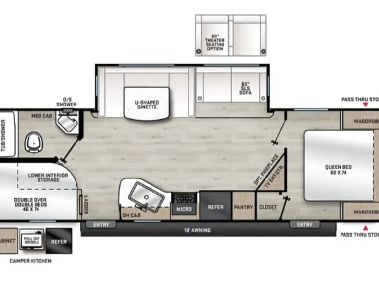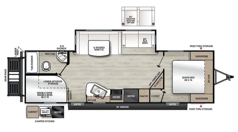 A tall 6'9" interior, private queen, and double bunks provide room for everyone.