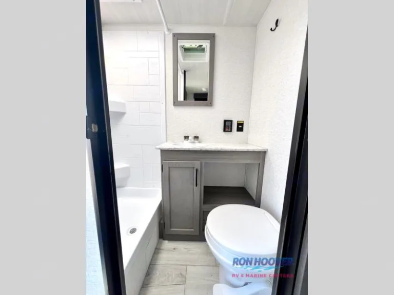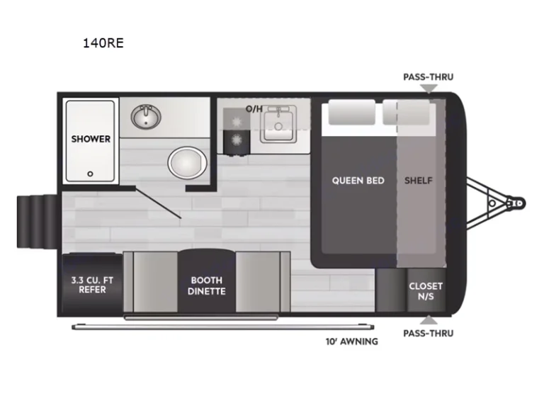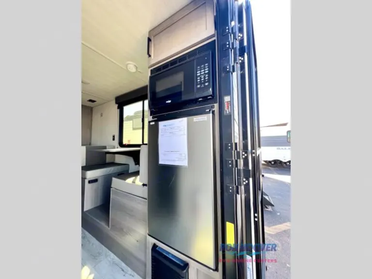 This lightweight travel trailer will be easy to tow and even easier to love! There is a unique rear entry door, a front queen bed, plus a full bath onboard so you don't have to use the camp's facilities. The two-burner cooktop and 12V refrigerator will let you cook and store food, and the booth dinette provides dining and sleeping space for a guest. If the weather is nice, you may just want to head outdoors to sit under the 10' power awning!What's included• Power cord & all electrical hookups (30A, 50A, & 110V)