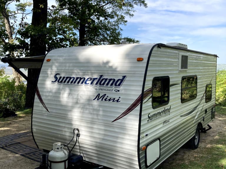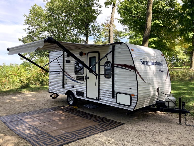 The Summerland Bunkhouse is the perfect camper for a family getaway or a trip with just you and your loved one. The camper sleeps four comfortably with an extra space for two on the fold out dinette. The Summerland Bunkhouse is both easy to tow and easy to set-up. You'll be relaxing in a chair 20 minutes after arrival. We hope you find our camper to be a great way connect with family and enjoy nature; just as we do. What's includedThis rental package includes many amenities at no extra charge (plates, aluminum foil, ziplocs for your leftovers, cleaning products, some bathroom items, garbage bags, etc).The trailer has a shower, toilet, refrigerator and freezer, stove, microwave, kitchen sink, TV w/ DVD player, radio, and full propane tank.The NEW queen mattress will rival your sleeping experience at home!DELIVERY and SET UP