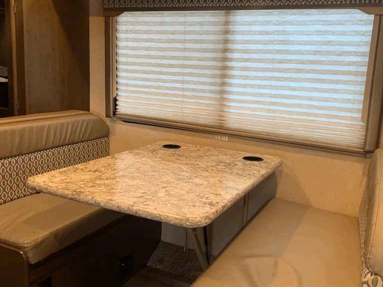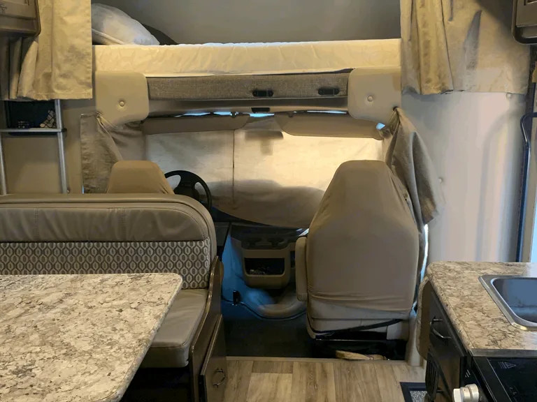 Lulu is a 2019 Thor Class C. Featuring 22 feet of living space with two queen sized beds , one main and one overhead. Also kitchen table converts into a bed. She will sleep 4 adults comfortably and the table is more for children. Lulu is equipped with kitchen sink, oven, microwave ,refrigerator, air conditioner and heater. The bathroom is good size with separate shower and storage space for all of your needs. There are lots of cabinets and large closet space inside as well as underneath outside storage. She has a generator, gas as well as electric making her self contained for when there is no hook up provided.What's includedWe will provide bed linens , basic kitchen items, coffee pot , outside table and four chairs , leveling blocks and small outside grill. Two privacy curtains and an awning.