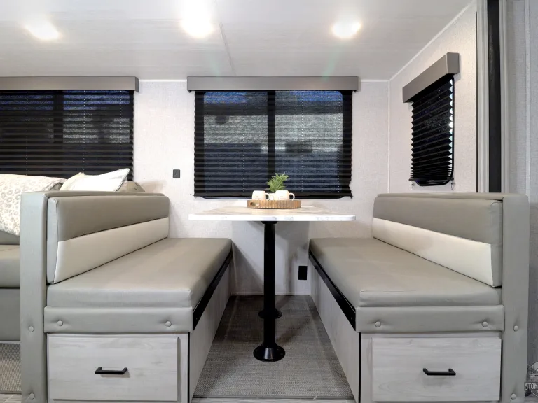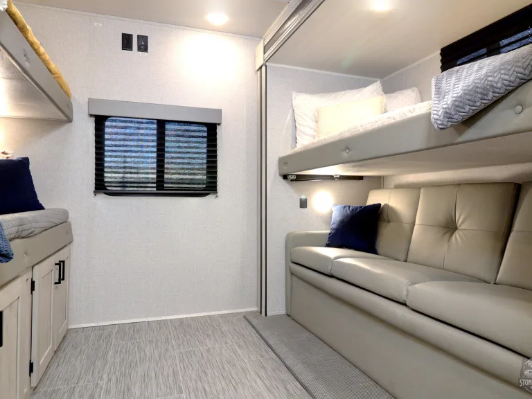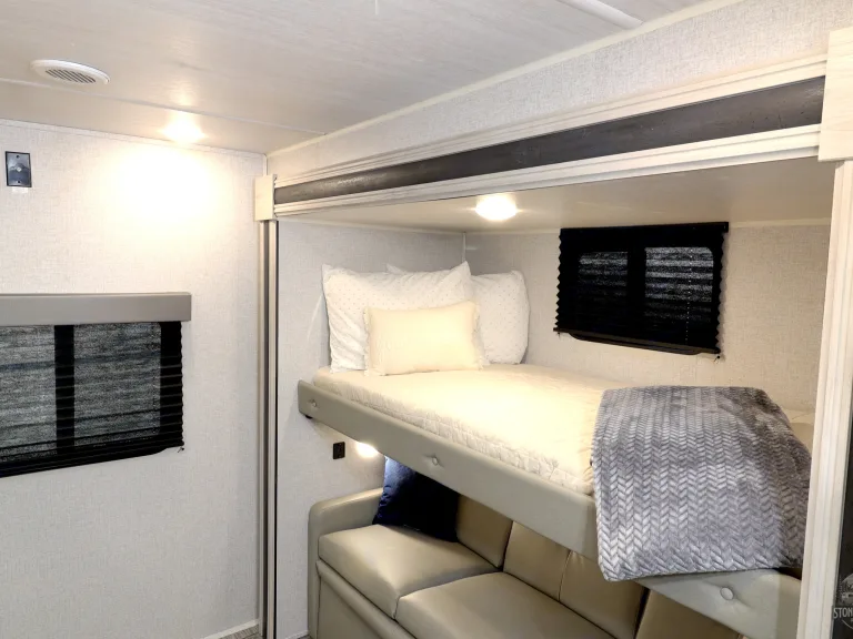 What's includedCompassion arrives fully prepared so your camping trip can start the moment you arrive.The camper will be professionally cleaned, stocked with basic camping essentials, kitchen cookware, utensils, linens for sleeping areas, and standard setup equipment. Climate control systems, appliances, and utilities will already be connected and ready when possible.Our goal is simple: arrive, unpack, and start enjoying your time at the campground.RecommendationsCompassion is a fantastic fit for lake-area camping around Table Rock Lake, Stockton Lake, or Pomme de Terre. Its spacious bunkhouse layout makes it especially popular for multi-family trips, kids’ lake weekends, and relaxed Ozarks camping where everyone wants space to spread out after a full day outdoors.