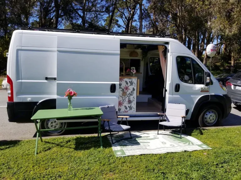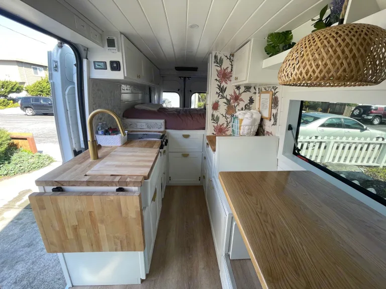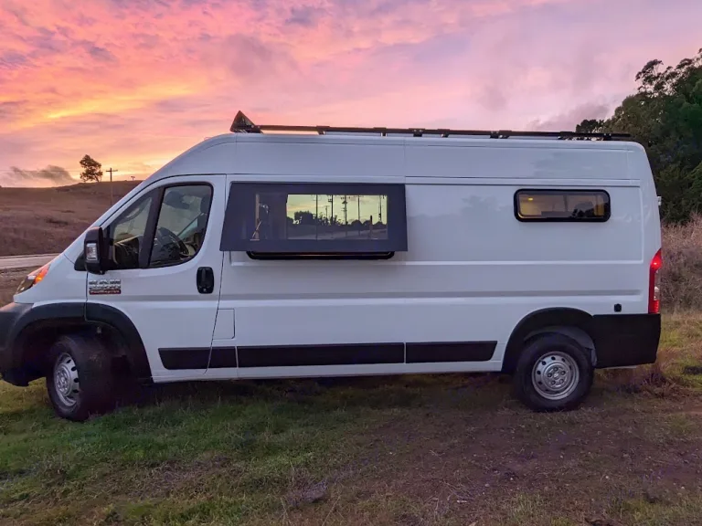 Wilder is a brand new 2022 Ram Promaster 2500 camper van. It features a high roof and fits into a regular parking space.Wilder is a custom, professional conversion fully equipped with a full-sized bed, farm-house sink, large dual zone fridge and freezer, propane stove top, hot water heater for steamy outdoor showers, and a heater so you can feel warm and cozy on those colder nights. Wilder also has two ceiling fans and multiple windows to cool you down on warmer days.Tons of garage space and drawer + cabinet storage for all of your essentials. My favorite thing about Wilder is the large table flanked by a dinette seat, swiveling captain’s chair, and large window. A perfect place for enjoying the view, card games, meals, and puzzles on those rainy days.Wilder is powered by three batteries that can be charged by the solar on the roof, shore power, or by the van’s alternator when you’re driving.I’m west of highway 1, 15 minutes from SFO airport, 3.5 hours from Tahoe, 3 hours from Yosemite, and 2.5 hours from Big Sur. What's includedWilder comes with fresh bed linens + towels.Dishes, utensils, and cookware are also included. Other things to noteNo smoking of any kind inside or near the van.