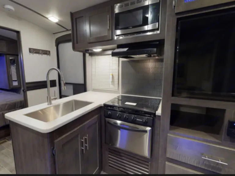 2020 Sunset Trail model offers modern amenities such as stainless steel appliances, laminate wood floors, modern decor, slide out and USB plug ins! King Size BED!!Entertainment includes large TV, radio with speakers inside and out. LED lighting throughout.Kitchen has solid surface tops with gas stove and stainless steel appliances. Camper include outdoor kitchen with stove and fridge! Enjoy the outdoors with the retractable awning and beautiful lighting.We will deliver and set up the camper for you! We will make all the connections!Additional delivery fee. First 60 miles=$100 roundtrip. Overage= .35What's included-Satellite TV