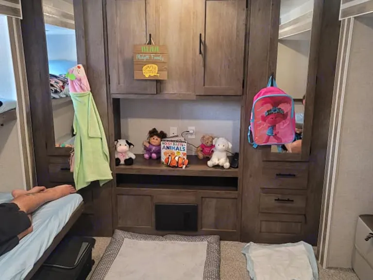 We have a 2021 31kqbts forest river wildwood camper. It has 3 slide-outs with a queen bedroom, a living room with fireplace and a large bunkhouse as well. It comes with everything needed to enjoy the simple life. Outside grill and kitchen as well. We ask no children and some pets maybe considered. Minimum stay of 7 days. There will be a legal contract that will be signed and notarized that obtains all rules and obligations. We are willing to set up and teach you how to maintain if you are new to the RV world. You find the spot and we will drop it for you within a 35 mile radius of Palm coast.What's includedFresh sheets and blankets.