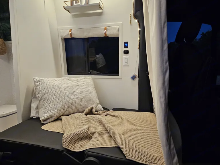 *Equipped with hitch for a bike rack or cargo carrierWhether you're venturing through scenic routes or parking under the stars, this van has everything you need for comfort, convenience, and adventure!Ready to roll? Book now and start your adventure in the ultimate campervan!What's included• Toilet paper