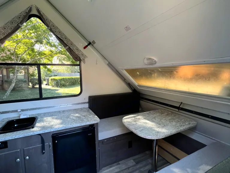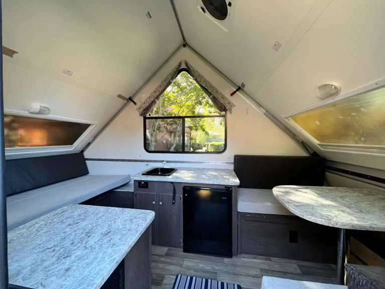 Has 2 beds- could sleep up-to 2 adults and 2 kids under 10.Water & Power hookup.1,350 lbs dry weight - check your vehicle towing capacity.2” ball hitch.RecommendationsMust bring own supplies of bed linens/sleeping bag, dishes, camping chairs etc.Other things to notePick Up / Drop Off may be limited on some days until after 3pm.