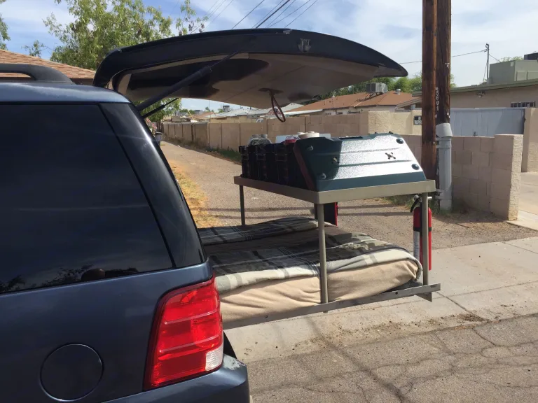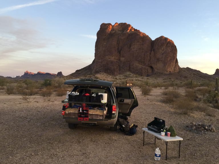 https://youtu.be/8mN0yQ4K8R8"We wouldn't hesitate to rent it again!!" -Sarah S., Ontario, Canada"Can't recommend the truck enough. Bed is excellent, and the rig is supplied with everything you could ever need." -Chris L, Boulder, Colorado"We really enjoyed the flexibility of just pulling over wherever we wanted and sleeping. The stove, the table, the chairs, everything worked great. Thanks!" -Brandon O, Honolulu, Hawaii- Easy Automated Check-in and Check-out Process, fitting your schedule perfectly!- Flexible 24-hour rental periods so you're not paying for a day at either end of the reservation you didn't get to enjoy- Insurance Options available, (please reach out to us to discuss them)- Premium Linens, fluffy pillows, comfy Memory-Foam Mattress, and extra blankets provided for ultimate comfort- Easy to Drive, easy to park, cheap to fuel. The average motorhome only gets 6-10 miles per gallon...our rigs get 15-17!!- This is "Stealth Camping" at it's finest...looks just like a regular passenger vehicle so you have more camping options than renting a full-sized RV would give you.As you may be able to tell...we're Super-passionate about sharing and promoting the Great Outdoors to our family and friends, and are looking forward to sharing our Ford Expedition-based Camper Van with you! It was converted by a professional fabrication shop here in Phoenix, AZ, and then outfitted and decked out with all the gear you will need by us...folks who have 30+ years of camping experience, and we've brought everything we've learned about packing light and enjoying the flexibility of "meandering" and exploring, into this one amazing all-in-one rig that we've spent Countless hours and thousands of dollars designing and customizing...AND, we're looking forward to sharing it with you! You're definitely going to love it!It rents out really quickly at the low price we have it listed at, so book it right away if it's available!! Let us know if we can answer any questions before you reserve it, and begin looking forward to your upcoming Adventure through the Southwest, and beyond!!Included:Onboard 12v Refrigerator/Freezer, 2-burner stove, folding table, camp chairs, cookware and cooking utensil kit including French Press coffee maker, plates/cups/forks/napkins/etc, cruise control, leather seats, dual AC/Heat, 5" thick Very comfortable memory-foam mattress and premium bedding, device-charging cords/outlets, 120v house-current inverter for charging laptops...all super-helpful in exploring your way to your next great spot to discover!!o Pre-stocked with four screw-top 1-gallons of drinking water, and four 1-pound Coleman propane containers, which are found at most any grocery store, camping store, or hardware store. (Just replace what you use so that it’s there for the next Adventurer!)o And, once you find another great (free!) camping spot, relax in the evening with a bottle of wine or a cold beer, and relax in our included camp chairs. There's even a tarp included to make some shade if you like.o Our comfy memory-foam mattress, plush bedding, upgraded linens will make your adventure more than comfortable when you bed down at night. The sliding bed (can be rolled out to sleep under the stars!) is 50" wide and 80" long...the length of a Queen, and the width of a full. Kevin is 6'4" (1.93 m.), and can comfortably sleep in it.We include topographical maps, suggestions for great camping sites that we've discovered, the Southwest is one of the most diverse and cool spots to check out!o Heading South: Bisbee & Copper Queen Mine, Chiricahua Mountains (Hoodoos), Kartchner Caverns (bats, stalagmites, underground lake), Old Mexico, Old Tucsono Heading North: Flagstaff, Grand Canyon NP South Rim (and the North Rim is even More awesome!), Moab (MTB, Jeep trails), Canyonlands NP, Goosenecks NP, Arches NP, Old Prescott (Whiskey Row), Old Jerome (haunted hotel), Old Clarkdale, Sedona (Jeep trails), Monument Valley (photography), Old Route 66, Stand on a corner in Winslow Arizona...o Heading West: Death Valley NP, Joshua Tree NP, San Diego, Los Angeles, Lake Pleasant, Imperial Sand Dunes / Glamis, Old Route 66o Heading East: Roosevelt Lake and the Apache Trail, Globe, Apache-Sitgreaves NF, Mogollon Rim, White Mountains, Show Low, Pine, Strawberry, Payson (world's oldest rodeo)...and the list goes on and on and on. :-)Our rigs rent out really quickly at the low daily and weekly prices we have them listed at, so book it right away if it's available!! Let us know if we can answer any questions before you reserve it, and begin looking forward to your upcoming Adventure through the Southwest, and beyond!!