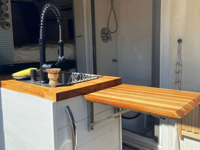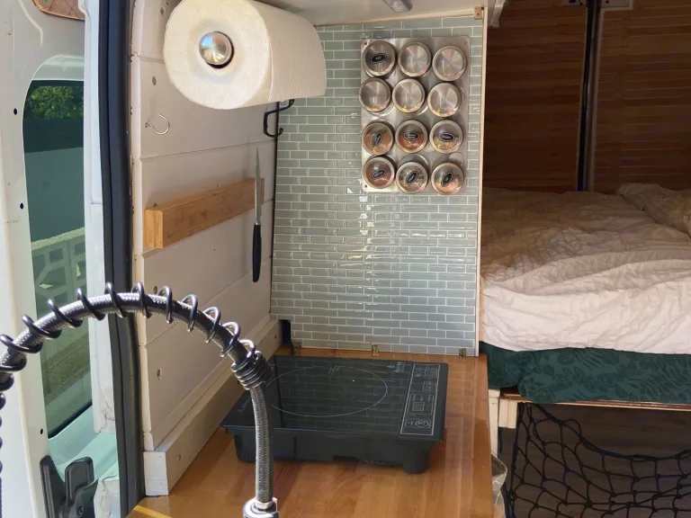 Tina Road Warrior Princess is a cozy, chic, and comfortable camper van with all the amenities. This beaut travels great and has an indoor shower and composting toilet to help staying on road easy and enjoyable. She also has solar panels with easy to use inverter to keep your devices charged, and a rooftop deck for you to recharge and relax.There's an air purifier above the queen bed and diesel powered heater for colder nights. The queen bed can also turn into a dining set, but is mostly kept as a stationary bed. The build out of this van was done impeccably and stays comfortable in most climates due to how well insulted it is.Wherever your destination may be, Tina Road Warrior Princess will get you there in style!What's included2x camp chairs (more can be rented upon request)