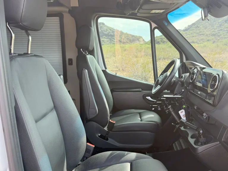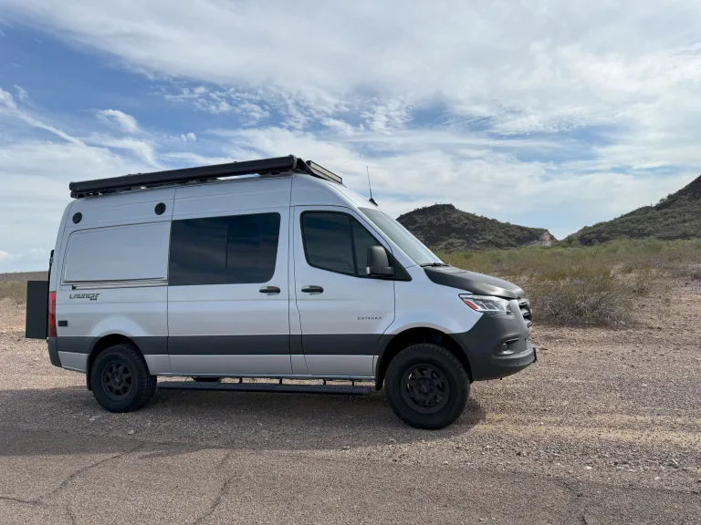 This Mercedes Sprinter Entegra Launch 4x4 luxury adventure van while a 'Tank' is a very smooth ride, easy to drive and can park in any parking lot making it convenient. This camper van is ideal for dispersed camping, offering the flexibility to explore off-grid while staying comfortable.