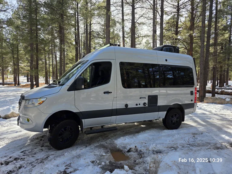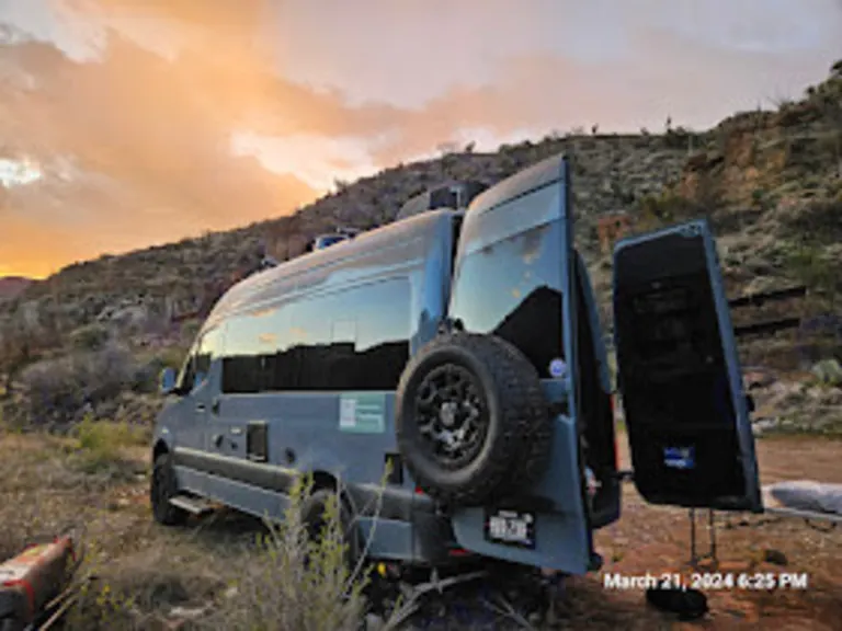 We had an amazing experience renting from Four Tens! The Sprinter camper van was spotless, comfortable, and thoughtfully set up — everything you’d want for a road trip. The onboard solar and house batteries worked perfectly, running independently from the engine. During our late-September trip, daytime temps were in the 80s–100s and nights were in the 60s–70s, and we were able to run the A/C overnight and still have plenty of battery power the next morning. I also use a CPAP machine and had no issues running it alongside the A/C all night — very impressive setup.