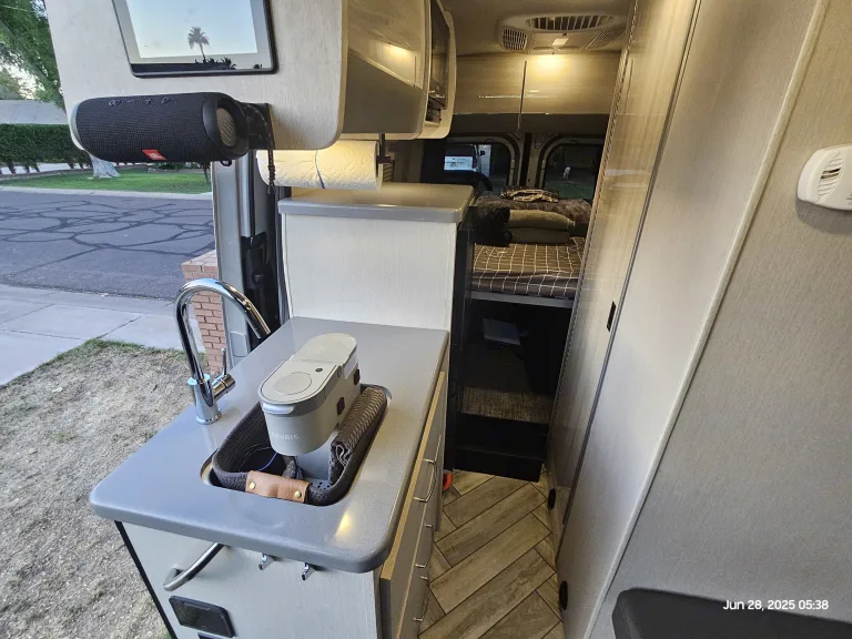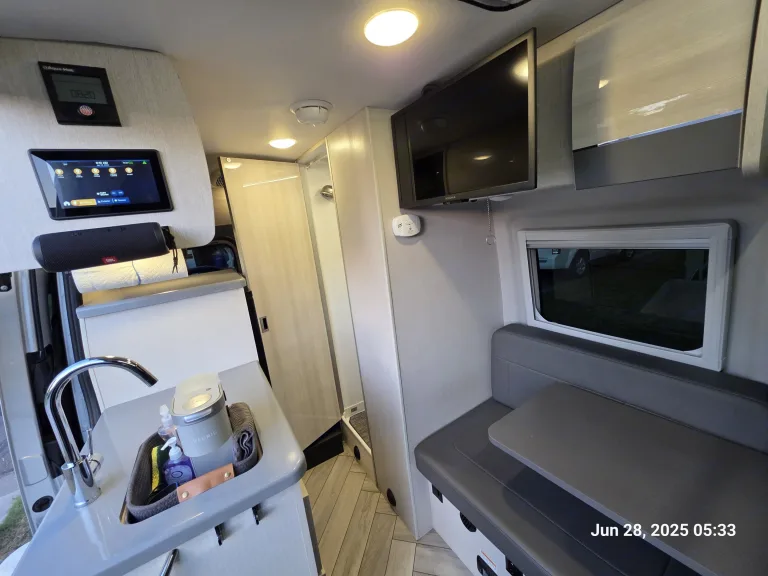 Mint condition, brand new Mercedes Benz Sprinter Thor Tranquility 2025 19M.Get ready for the ultimate adventure! We love to share our RV van when we are not using it! This is an off-the-grid vehicle with a kitchen and wet bath, solar, hot water, AC/heater, TV, bike rack and generator. The bed is ideal for those under 6 feet tall and is also higher up to allow for maximum storage underneath- so be aware of those details. The back and side doors open with screens that allow you to feel like you are part of the outdoors even when relaxing inside. Perfect for being self contained while exploring the wild blue yonder!What's includedYou can bring your own goods or use the following that is included in our standard rental: