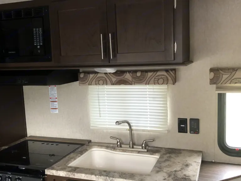 Kitchen appliances - refrigerator (AC, DC, propane), stove, microwave