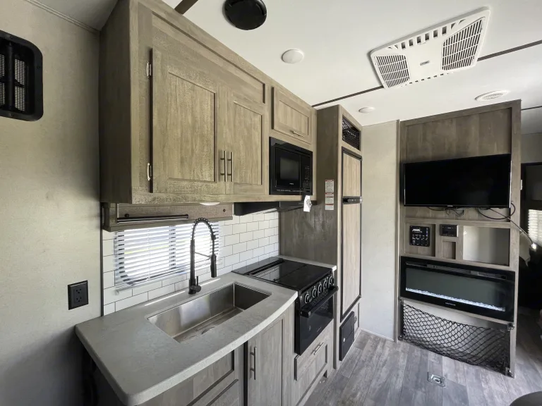 Great toy hauler. Sleeps 6 comfortably. Fits a stock 4-seat Polaris rzr. Toy loading space is 14’6” long and 74” wide. It has a 30-gallon fuel station. 87 gallon fresh water tank, 38 black and 38 grey tank. TV and electric fireplace. Propane tanks. What's included• All Kitchen necessities included