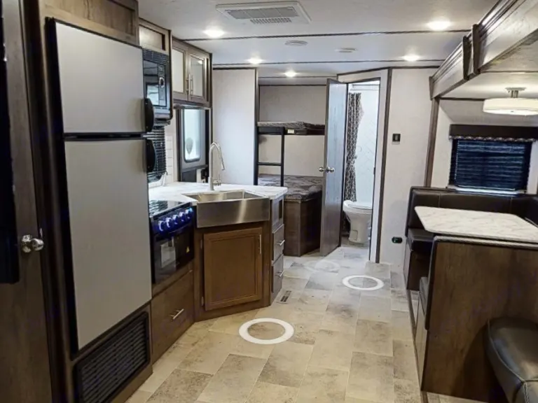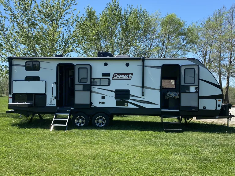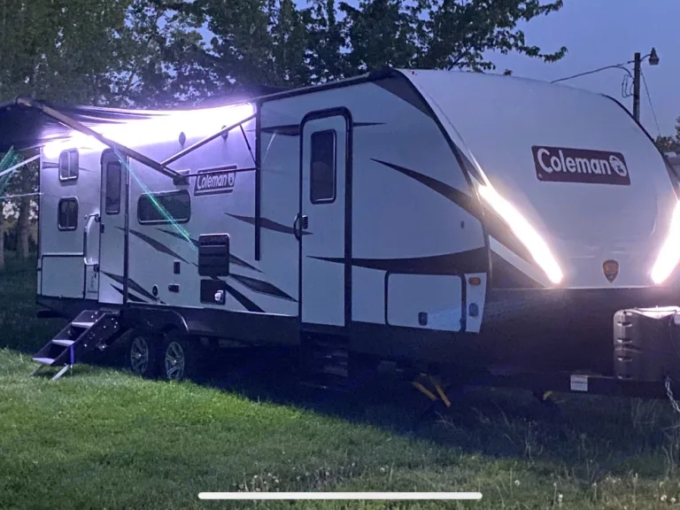 1/2 Ton Towable! Wilber is a Coleman 2021 Lite Trailer 6500 lbs. Sleeps 8 people, television, ambiance - gas flameless fireplace (pick a color for the flames - with heat or no heat), AM/FM radio with Bluetooth, microwave, fridge, freezer, shower inside & outside, full size 300 lb limit bunk beds, Queen size bed, Full pullout couch bed, dining table/ makes into Full bed, bonus outdoor kitchenette with fridge & hooks directly into propane tanks line, toilet & sink, lots of storage, main bed linens, pantry, master closets and drawers, two door accessible to trailer, one with easy access stairs for those not too steady on their feet.