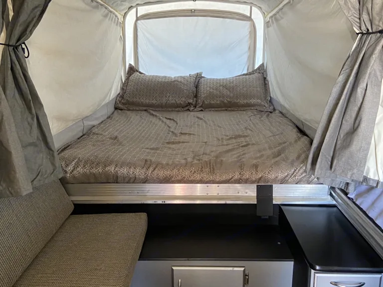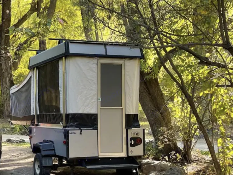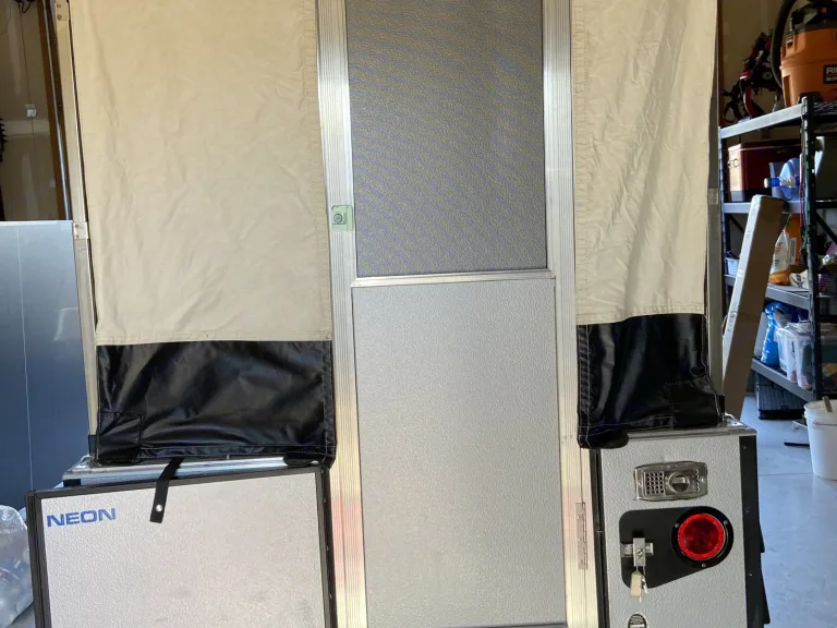 Ready for some Off-The-Beaten-Path exploring? This light weight towable can be pulled by most SUVs and is suitable to be taken to many remote locations where you can enjoy nature at its finest. This popular Neon is in great shape and we have loved it! Sleeps 3 adults easily or 2 adults and 2 young children. Solid roof with aluminum door and canvas sides that open up to windows that can be zipped open to let fresh air in or zipped with curtains for privacy. Each rental includes: first 5 gallons potable water, and starter supply of toilet paper, paper towels, dish soap, trash bags and coffee filters. Also included: outdoor grass mat, battery powered LED lantern, mess kit, coffee percolator, cooking and eating utensils, wash tub for dishes, first aid kit, tool kit and attachable cook stove, lighter, folding table and two camp chairs. This camper has 1-12v batteries with a solar charger to power interior lights, 12v outlet and heater fan. Folded down, this trailer tows like a dream. Additional basket on top for extra provisions or toys. Complimentary stainless steel skinny OR wine tumbler included with any completed reservations greater than 2 weeks.Optional upgrades include: Igloo 52 Qt Heavy Duty Cooler, Day Pack backpacks, 2 person tent, sleeping bags, air mattresses, additional chairs, bear spray deterrent, solar shower, hammock, 2-bike bike rack and SUV awning. Purchase additional Peak to Peak Adventures stainless steel skinny OR wine tumblers.Take this guy up in the mountains for a few days to a few weeks! Some of our favorite nearby locations include: West Yellowstone, MT, Island Park, ID, Jackson Hole, WY, and Sun Valley ID and many more! What's includedEach rental includes: first 5 gallons potable water, 20lb LP tank and starter supply of toilet paper, paper towels, dish soap, trash bags and coffee filters. Also included: outdoor grass mat, battery powered led lantern, mess kit, coffee percolator, cooking and eating utensils, wash tub for dishes, first aid kit, tool kit and attachable cook stove, lighter, folding table and two camp chairs. This camper has 1-12v batteries with a solar charger to power interior lights, 12v outlet and heater fan. Folded down, this trailer tows like a dream. Additional basket on top for extra provisions or toys. Complimentary stainless steel skinny OR wine tumbler included with any completed reservations greater than 2 weeks. RecommendationsSome of the favorite nearby locations include: West Yellowstone, MT, Island Park, ID, Jackson Hole, WY, and Sun Valley ID and many more! You can hike, bike, kayak, golf, fish...until your heart is content. This trailer will most definitely go where there is no cell phone service!Other things to noteOne dog/pet per booking, no more than three adults sleeping inside. No smoking/vaping or cooking inside the trailer please. No festivals or 4-wheel drive only roads.