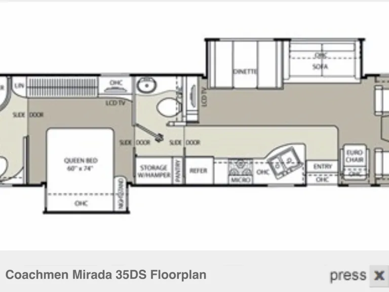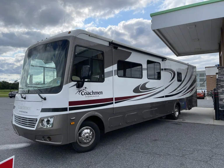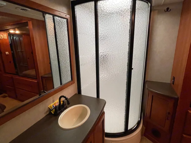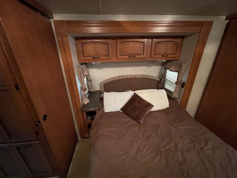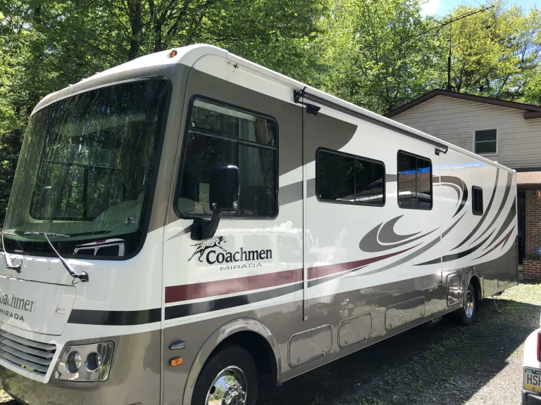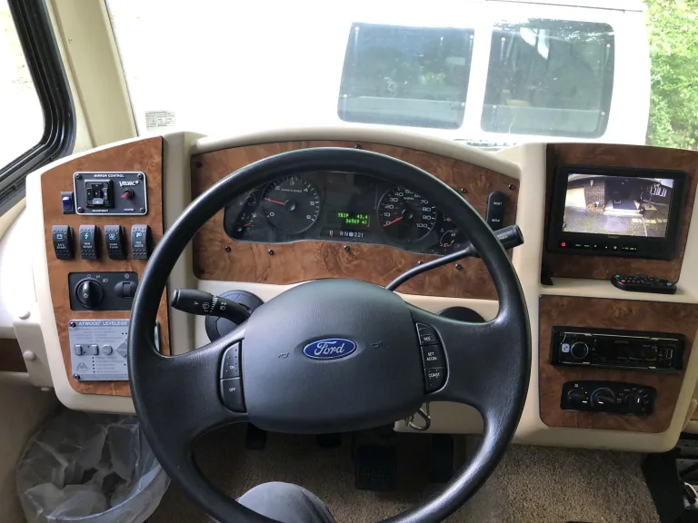 Motor home has a queen bed with a Master bathroom and shower also 1/2 bathroom, 2 slide outs, auto leveling, new tires, equipped with a 3000 Watt Inverter and 750 Watt solar system, 2 HD TV'S each including DVD Players, 2 Maxx Air fans with remotes, Radio connect to your cell phone VIA Bluetooth for hands free operation play your music .What's included3 Camping chairs, 2 ground Mats , Folding Table