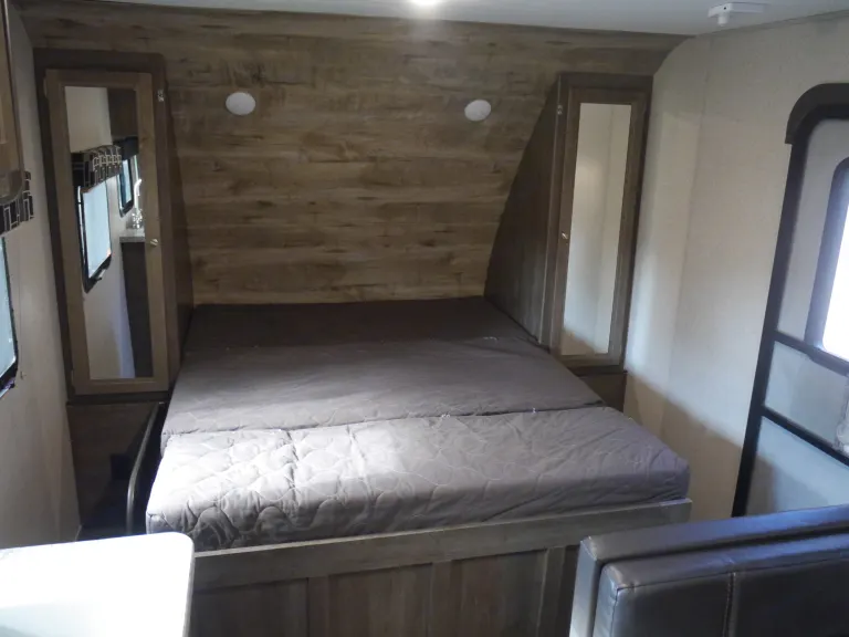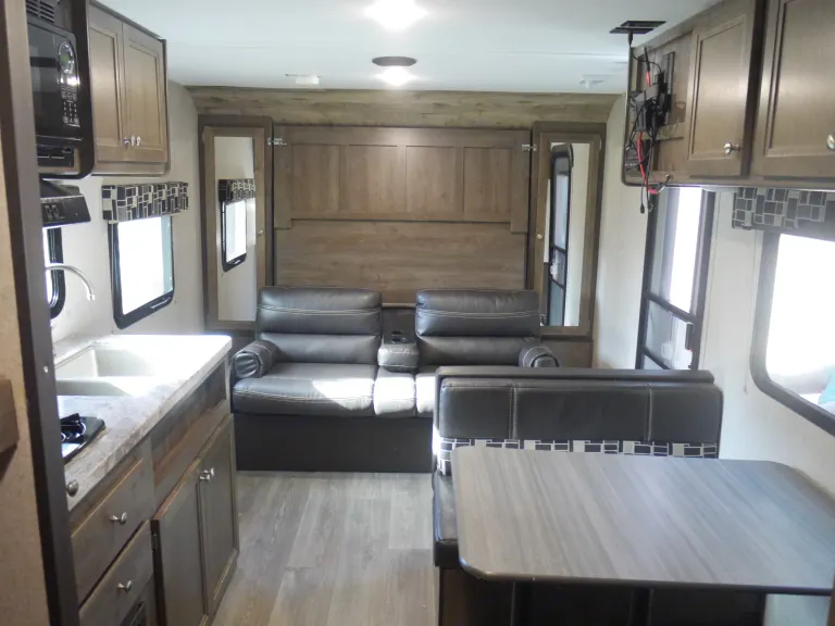 It's camping time with up to 5 people in this camper made for fun and time together. You'll love the couch by day with a pulldown Murphy bed by night. Hang out in bed or on the couch and watch your favorite movies with the smart TV and DVD player. The radio also have blue tooth if you want to connect your favorite playlist.