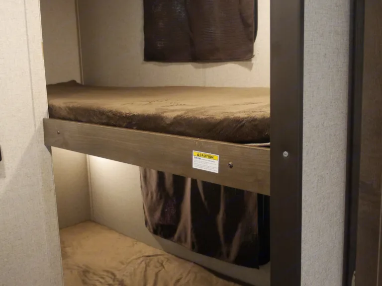 The bunkbeds each have their own private nook, lamp and window. They can sleep up to 300 lbs each.