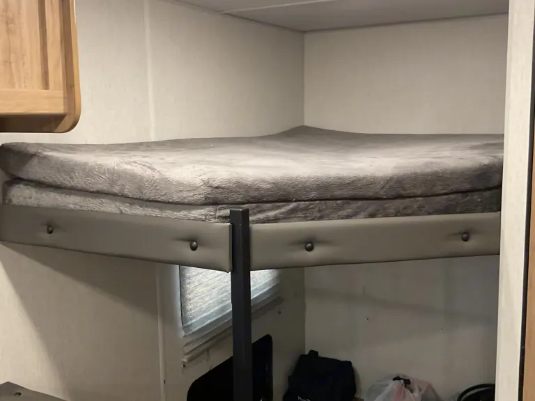 Enjoy family adventures in this all-electric bunk model which features sleeping for 4 to 8 depending on size with a queen bed up front, bed bunks only top one in the rear curbside corner, and you could even convert the booth dinette and sofa to sleep more. Inside, you will find ample storage with overhead cabinets and a large shelf above the queen bed, plus more shelves next to the entry door, as well as a pantry and storage on either side of the bed. You will appreciate the full bath with tub/shower, toilet, and sink so you can skip the campground facilities. On the outside, you will also find a 12' awning for added outdoor living, and outside storage for your camping gear, plus more!Other things to noteNo smoking inside or near the travel trailer
