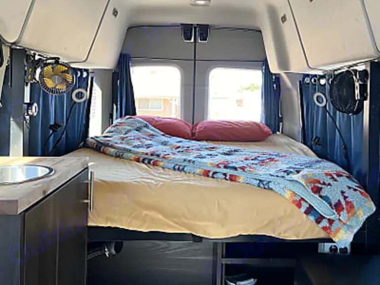 Experience the perfect fusion of outdoor adventuring and luxurious living with our Wandervan campervan—the next evolution of camping. Our seamless self-serve pickup and smart-lock system will have you hitting the road in no time.Embrace the coziness of our medium-sized campervan crafted just for two. Rest well in our ultra-comfortable queen-sized bed, outfitted with a superior 6" memory foam mattress and pre-prepared with a fresh fitted sheet as a part of our commitment to your convenience. We can add a Luno mattress system to create another sleeping area in the front cab area. This is an inflatable mattress system, so families with 1 or 2 kids can easily make this size of van work. We can also add a second row of seating for kids, therefore a family of 3 or 4 can travel in this vehicle.Designed to deliver an accessible and free interior environment, the 5'9" headspace offers generous room to stretch, lounge, or twirl around. No need to travel light here - our abundant storage area beneath the bed comfortably houses up to 13 large, rolling cases. Your gear will be easily accessible and perfectly organized.Designed with safety and comfort in mind, the front seats provides secure belt-fastening for two travelers. To accommodate your party, add an extra 2-person bench with seatbelts upon request. Cook up your camping cuisines in our fully-equipped kitchen boasting a 31-quart refrigerator, a manual foot pump sink for water access, countertop, a dedicated kitchen cabinet, a deployable kitchen table, and a robust 2-burner Coleman stove (note: 16 oz propane fuel canister not included).Settle back into our camping chairs—provided for each vanner—to soak up panoramas, star gaze or just enjoy a good old-fashioned chat. Sit comfortably inside the van on the plush bench, an ideal perch to prepare for your day’s expeditions.At Wandervans, we celebrate the thrill of open-air living without compromising on your comfort. Our campervan features intuitive magnetic mosquito nets for an easy-in, easy-out experience, ensuring you can bask in the ambiance while keeping the bugs at bay.With ample hooks and extensive storage space, you'll enjoy the convenience of having your personal items tucked neatly away yet always within arm's reach. While designed for backcountry adventures, this vehicle includes a hitch receiver but excludes trailer lights connections to keep the focus on self-sufficient camping. This Campervan also has a built in Webasto Heater that can keep you night and toasty during colder nights. It's easy to run, and we provide all of the instructions you need.Travel in style and efficiency; this campervan promises an impressive 20 mpg on the highways, making your trips more cost-effective and eco-friendly. Each trip is available with an inclusive 125 miles per day. Need a little more? We also offer custom mileage packages that allow you to pre-pay for your mileage overage for 30 cents/mile as opposed to the standard 35 cents/mile perfect for longer journeys or in-depth explorations.Set off with peace of mind! For more information on our comprehensive insurance coverage, visit our website at .Promising exceptional service and an unforgettable campervan experience, we are excited to help you fulfill your adventure bucket list in comfort and style. Let the open road beckon and experience the thrill of a lifetime with Wandervans, where the adventure begins and the horizon never ends!Please take note of our Minimum Rental Days required, currently set at 3 days for the 2024 summer rental season.