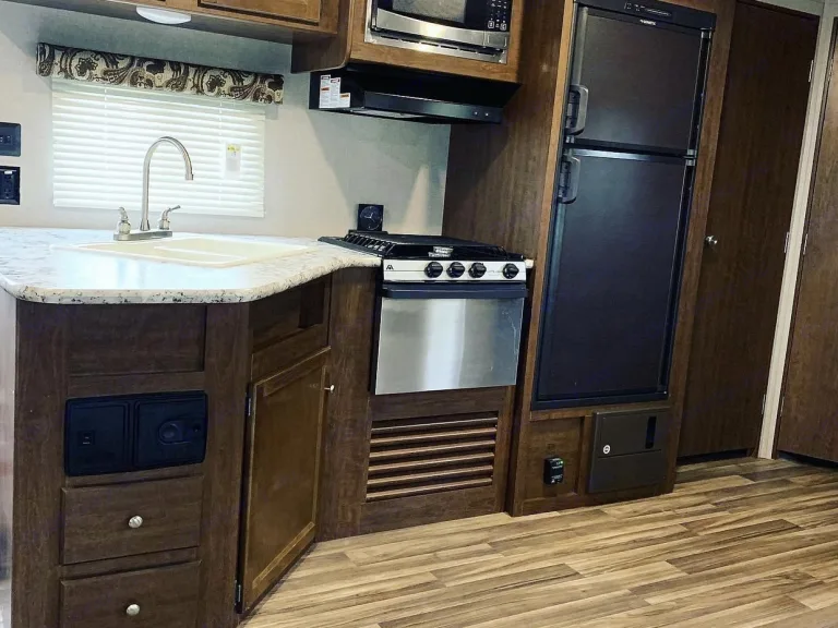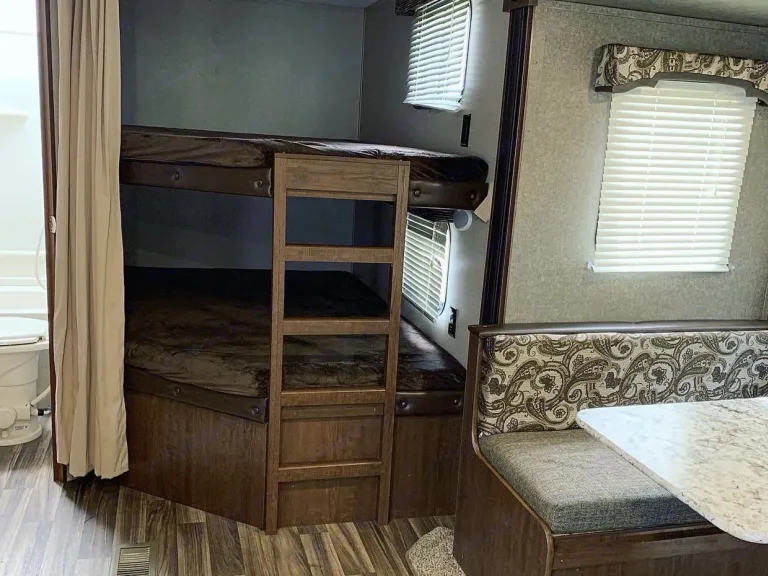 Enjoy time away in this beautiful home like trailer.What's included It comes with a full set of pots and pans, dishes, utensils, and BBQ. Other things to notePlease empty septic tank before you return the trailer. Please clean up after yourself and leave trailer as it was when you got it. Please make sure propane tanks are filled back up. Failure to do so will cause you to be charged from the funds of your deposit.