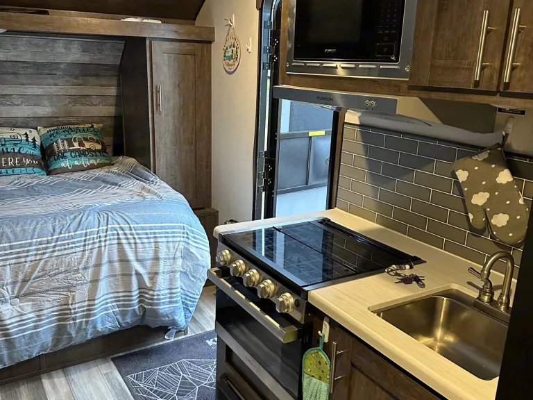 Approx. Return Times: Mid-late morningNote: delivery fees are subject to change pending details of location. I do not rely on platform calculations of distance. Please give location details with your booking request. What's includedDining essentials included. Linens and camp set up gear are available for an extra fee. RecommendationsYou need to have a brake controller. I have a Bluetooth plug and play avail for rental if needed. I also have a weight distribution hitch avail for rentalOther things to noteWell behaved dogs are welcome, not on the beds though. NO smoking or vaping inside. Please return as clean as it was delivered, with full propane tanks, and empty water / waste tanks (unless you take advantage of the add-ons).