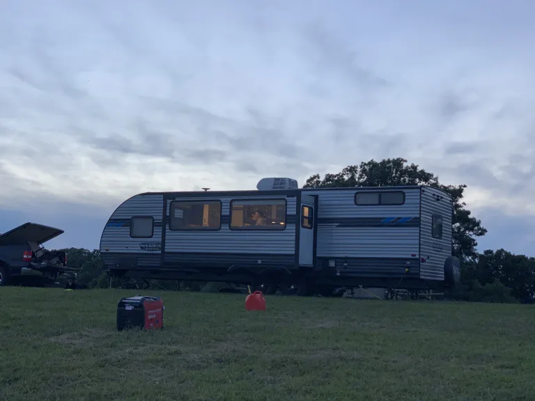Two bedroom camper with 52” television and electric fireplace. The second bedroom is tucked in the back with a camp queen bed and two twin sized bunks. This is great for traveling with children as you can still access the entire camper after the kids have all gone to bed. What's includedCookware, fresh linens, camping chairs, folding table, ice maker, and outdoor rug. Generator available for 15 additional dollars a day. RecommendationsPatoka lake is our go to campground. If your looking for something more secluded, private property is always a great option. The app "Hipcamp" is great for finding more private camp experiences. Other things to noteWell behaved pets are allowed upon approval. Additional security deposit and fees will apply.