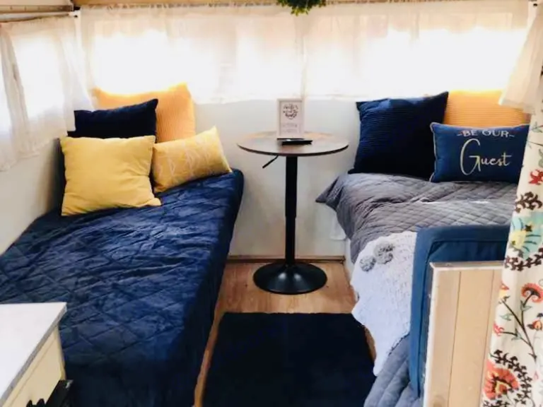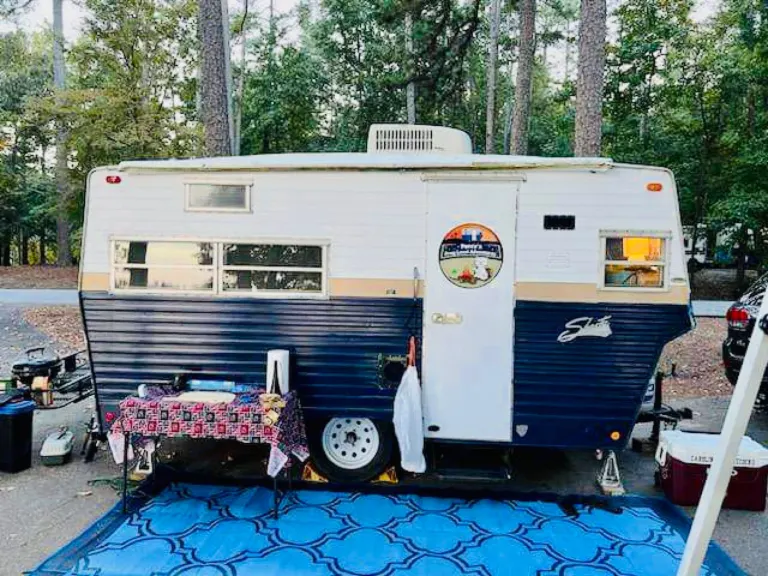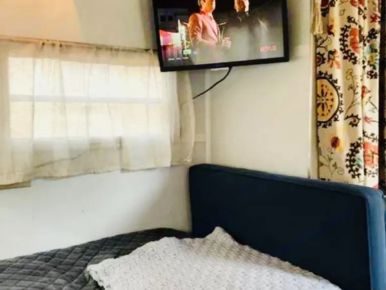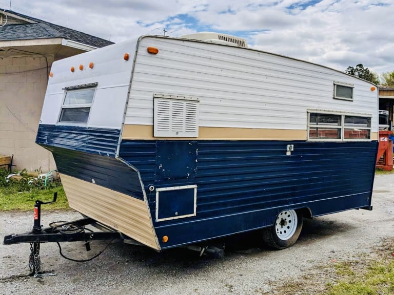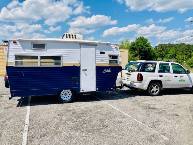 14.0ft$60 daily rental fee | $30 cleaning fee | Add-ons: Local Setup & Delivery“Percy’s Pad” is 1400 lbs and has been meticulously remodeled to add some new parts and decor, but it still has many original pieces to help maintain the true vintage gem it is.It has a ceiling air conditioning unit, propane heater, faucet, toilet, tv, lights, oven/stove, refrigerator, microwave, coffee maker, toaster, fan, pots and pans. It also has a Camco Rhino 28 gallon Portable Holding Tank, an Enernova Solar Generator 1000W with 100W Portable Solar Panel, and a portable outdoor shower with a Kipida Solar Shower Bag (5 gallons).It is currently set up with two twin beds. A third top twin bunk bed folds down from the ceiling. A foldable floor sleeping cushion is also included as an additional option for a fourth person.This little camper is so much fun and easy enough to hook up and go on a whim for a weekend getaway or a long stay at your favorite park!*Pets are allowed upon approval. An additional fee will Only be charged for uncleaned pet messes.Pick up time begins at 11:00 am with the option to upgrade to an earlier time.Drop off time is 3:00 pm with the option to upgrade to a later time.To tow with your vehicle you will need:A vehicle that can tow approximately 1400 lbs (empty camper, so allow more weight after loading the camper).A receiver trailer hitch is provided.After each stay “Percy’s Pad” is ventilated. All surfaces are cleaned and disinfected. All towels, linens, drapes and rugs are washed on the highest heat settings available.What's includedIncluded:2 propane tanks