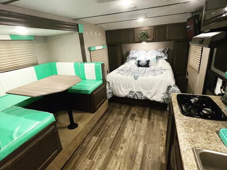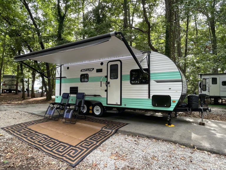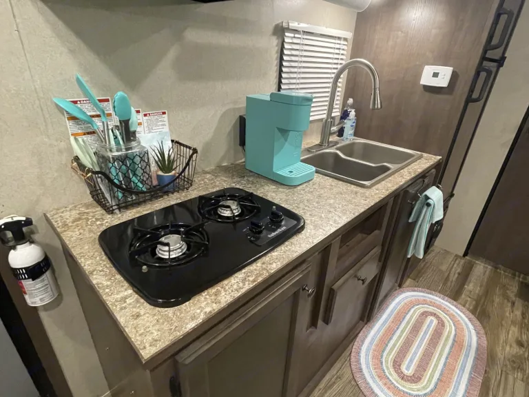 KeurigWhat's includedFresh linens, outdoor rug, towels, keurig, cookware, outdoor reclining chairs, small grill, outdoor table.RecommendationsBring all personal items and enjoy your stay.Other things to noteIf you run out of toilet paper on your trip, you must purchase and use rv toilet paper found in camp store or the camping section of Walmart. We only provide 2 outdoor chairs.