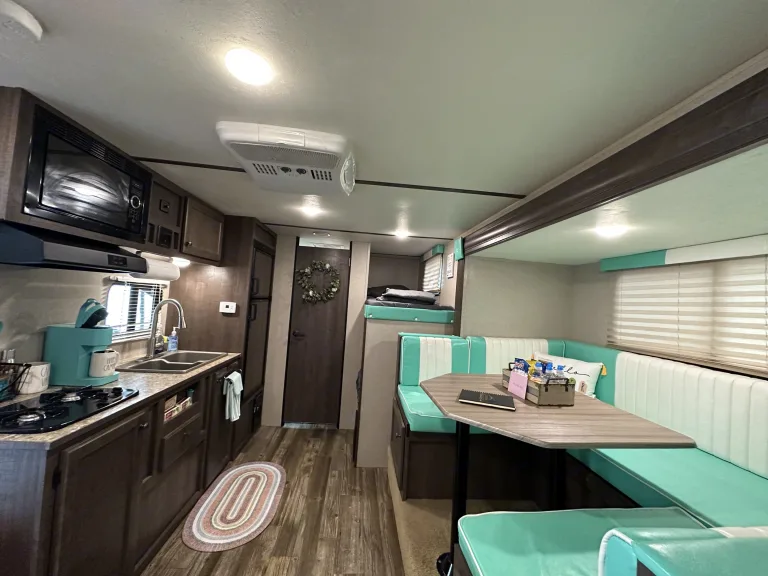 At only 4,000lbs, this camper can be pulled by a half ton truck and some SUV’s. Stocked and ready for your next getaway. Queen bed, 2 bunks rated at 250lbs capacity and a comfortable convertible dining area allows sleeping for 6. Slide out really opens the area up giving plenty of room to move around. Outdoor shower, Keurig and propane connection for your outdoor grill or stove are some conveniences you get with his camper. Pets Allowed Upon Approval!Pick up time starts at 11am with the option to upgrade to an earlier time.