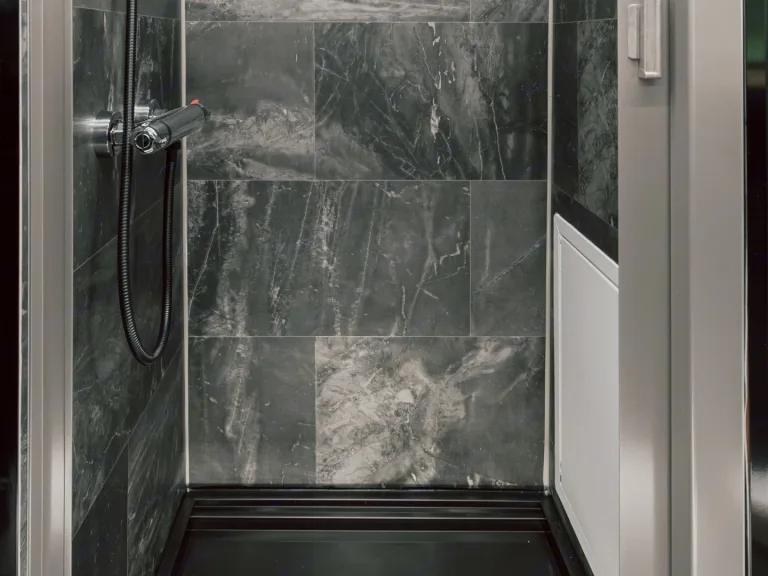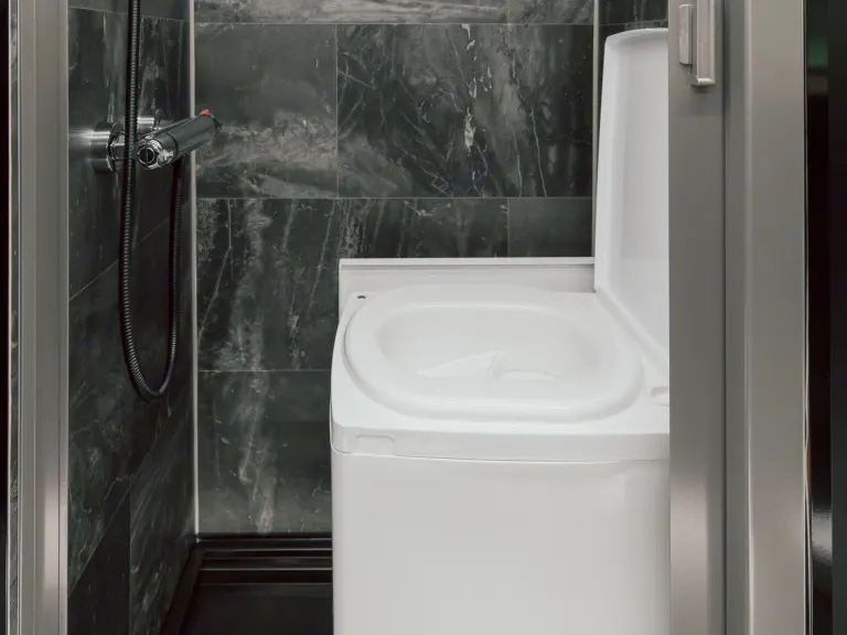 Douche intérieure (non disponible du 30 oct. au 1er avr.) et toilette pour votre confort.