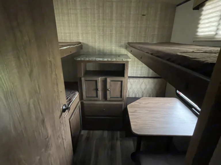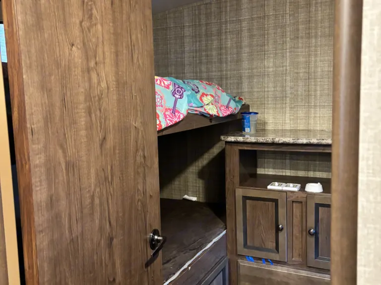 This is the perfect RV to take your family on a roadtrip and make lasting memories. There is a bedroom in the back with a door that can sleep 4 people in bunks. One bottom bunk turns into a two person sitting area with a table. The main living area is nice and open and has a dining table and a couch as well as the kitchen and a TV and DVD Player. The front bedroom also has a door and a queen size bed with a TV and DVD Player and lots of cabinet space. We absolutely love our RV and would love to share it with you for you to make some family memories that will last a lifetime.No roof access. NO Smoking OR VapingSome RV's are different in size and how many people we can sleep. What we provide in each one of our units that pretty universal is as follows.Full bedding for main bed